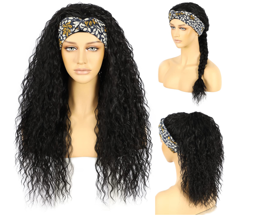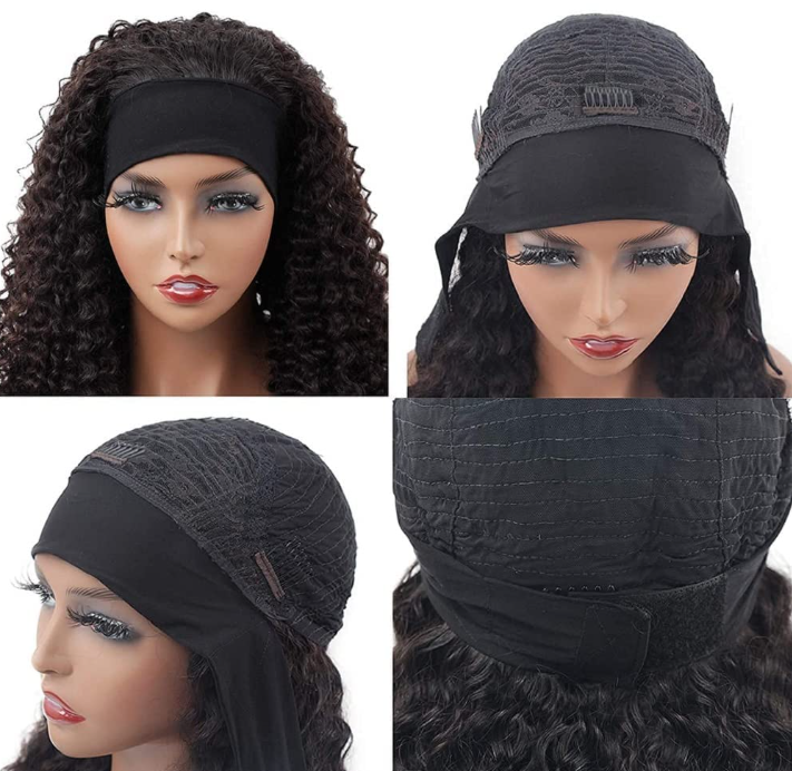 Headband Wig Design: New design water wave headband wig with stretchy head band, glueless and easy to wear. This wig has a built-in headband which was sewn on professional. You can switch up your scarfs to give it a trendy look.